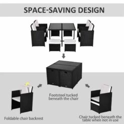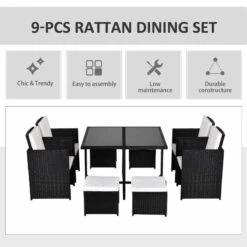 Outsunny 8-Seater Rattan Dining Set – Black & Milk White – 841-108