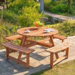 This 8-Seater table is ideal for outdoor, patio, garden or cafe style use. Its Smooth finish edges ensure added safety with no splinters. Whether you are having a picnic with your family, spending time with friends etc, this wooden picnic set is all you need. Its Fir wood construction ensures stability and add years of life to the set.