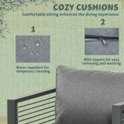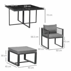 Outsunny 9 Piece Garden Dining Aluminium Cube Table Chairs & Footstool Set – Grey – 84B-657