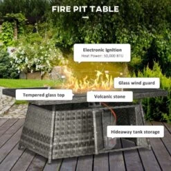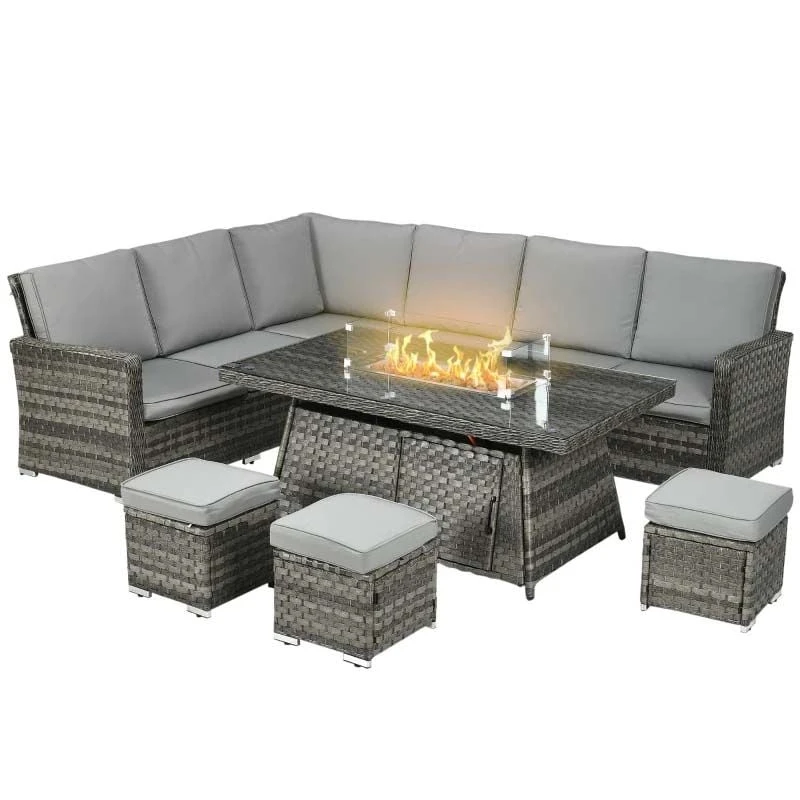 Outsunny 9-Seater Rattan Garden Furniture Set With Fire Pit – Grey – 860-290V70GG