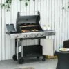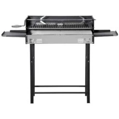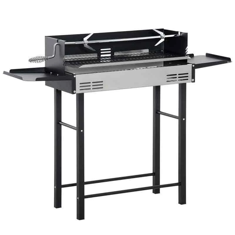 Outsunny BBQ Rotisserie Grill Roaster, 3-Level Grill Grate & Foldable Side Shelves – Black/Silver – 846-075