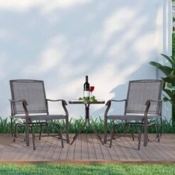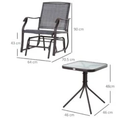 Outsunny Bistro Set Steel Frame Glider Rocking Chair and Table – Grey -84B-359GY