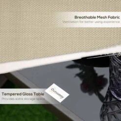Outsunny Outdoor Furniture Bistro Set Tempered Glass Tabletop – Khaki – 84B-964KK