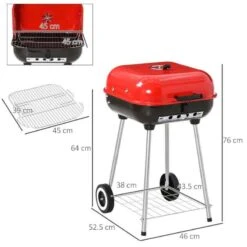 Outsunny Charcoal Trolley BBQ With Two Wheels – Red/Black – 01-0569