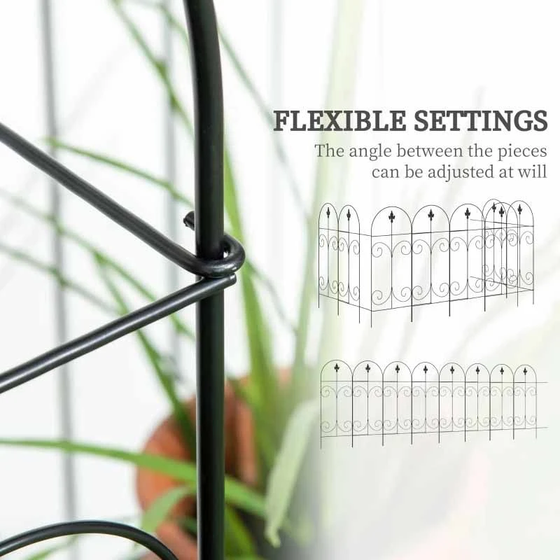 This Outsunny decorative garden fence can be set to the shape that you want. Great for plenty of different areas. Traditional look, a great home entrance piece. The metal fence panels feature a strong structure, suitable for outdoor use. Easy to set up by simply hooking pieces together and pushing the fence into the ground with the anchor stakes. Can be used as a garden fence, a border edging, a space partition, or just a patio decoration