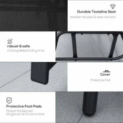 If you are looking for a modern design piece of furniture to complement your outdoor living space, this Outsunny rocking garden chair set is the one for you. Constructed from a strong metal powder coated frame, this garden bench will last for years to come. Covered in a texeline material, it will be protected from the elements by draining water and will circulate air to keep you cool on warm summer days. The gliding arms will gently rock you back and forth keeping you completely relaxed for hours on end. With a deep seat, high back and curved arm rest, this garden chair will keep you supported and comfortable all day long. Complete with a tempered glass central table perfect for you and a friend to rest your drink or book.