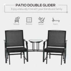 Outsunny Double Garden Rocking Chairs-Black-84A-084BK