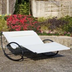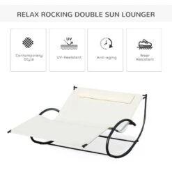 Outsunny Double Rocking Sun Lounger – White – 84A-027
