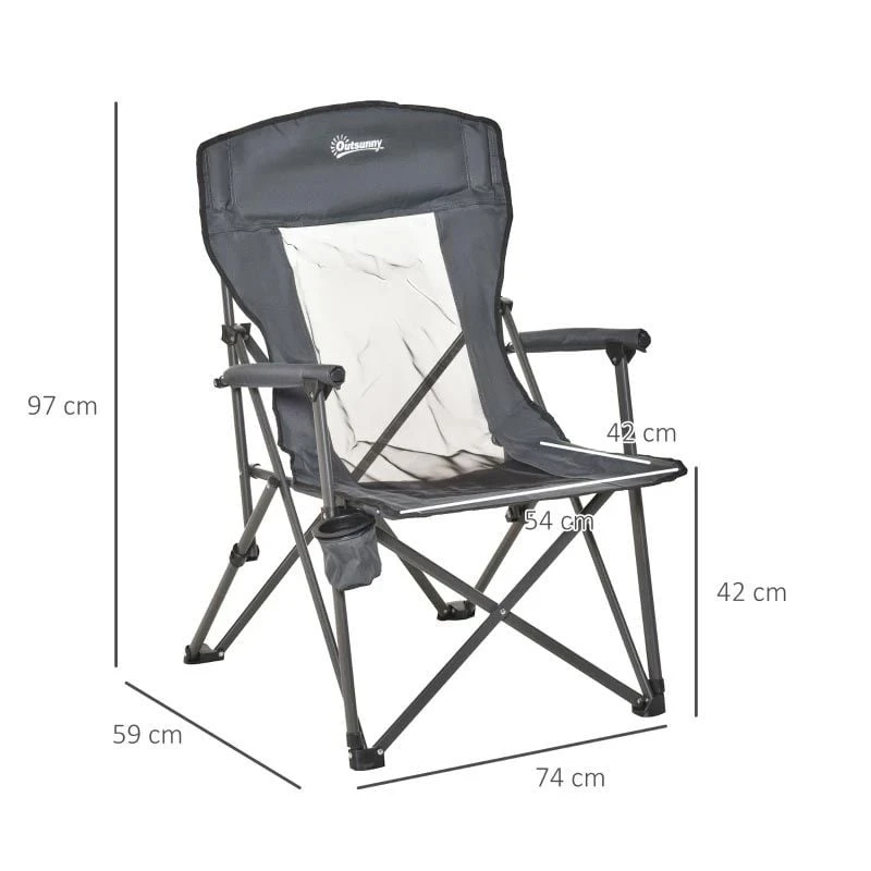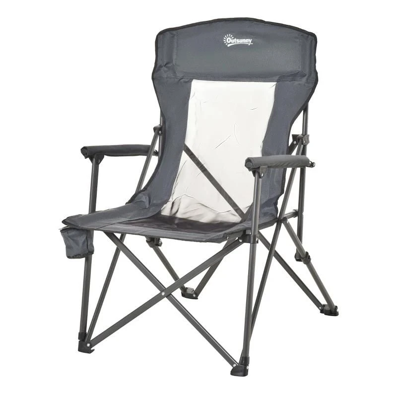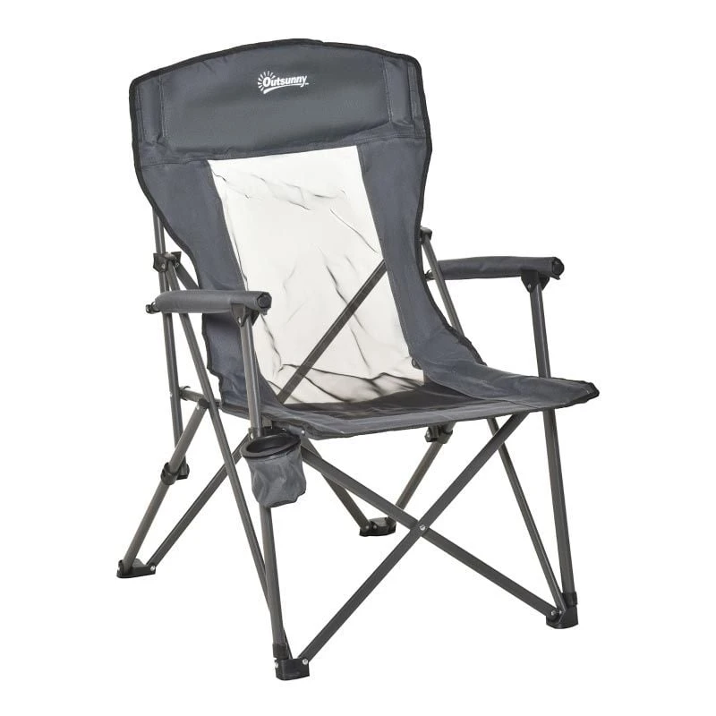 Outsunny Folding Camping Chair with Cup Holder – Grey – A20-190