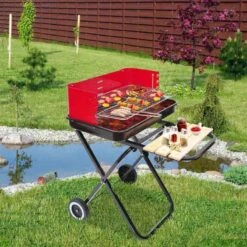 Outsunny Folding Charcoal BBQ Trolley With Two Wheels – Red/Black – 01-0559