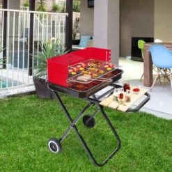 Outsunny Folding Charcoal BBQ Trolley With Two Wheels – Red/Black – 01-0559