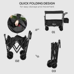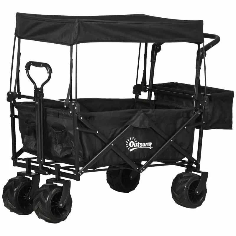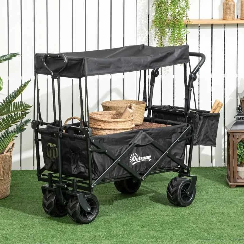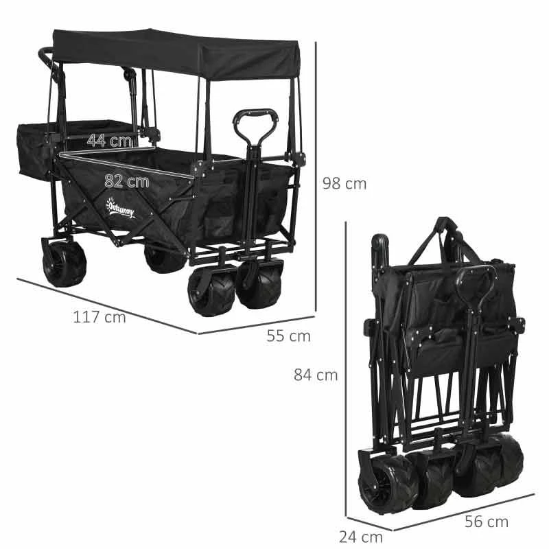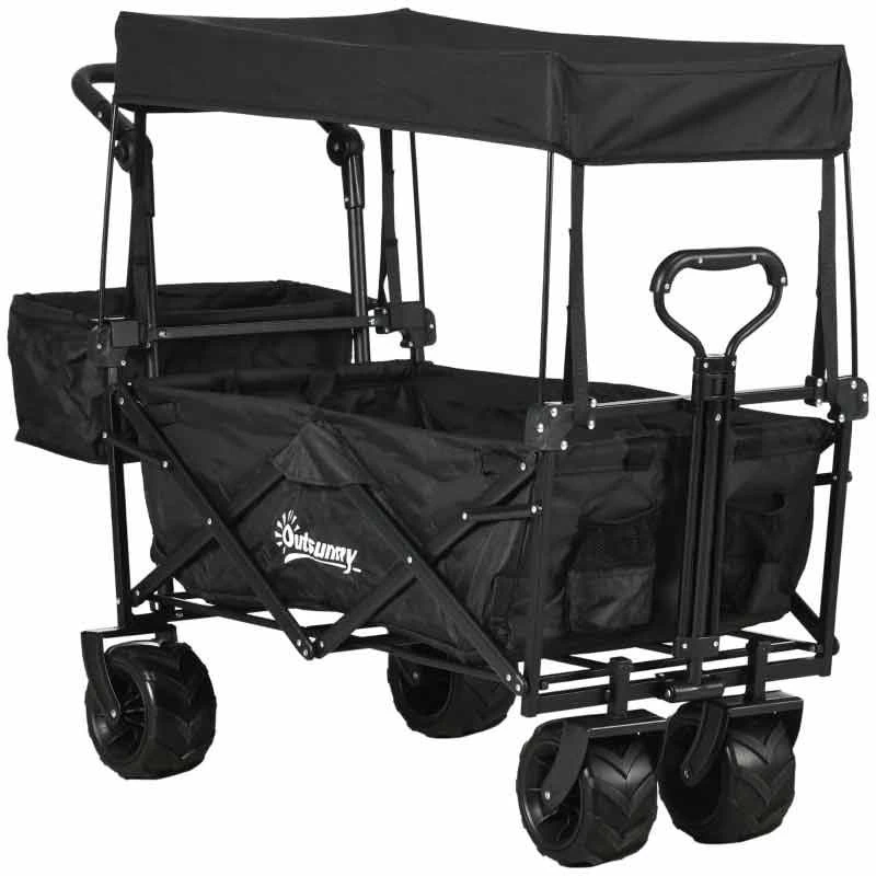 Outsunny Folding Garden Trolley With Canopy – Black – 845-327V02BK