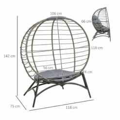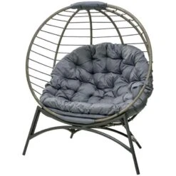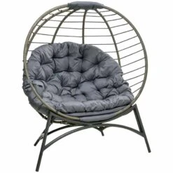 Outsunny Folding Rattan Egg Chair Freestanding – Grey 84G-057V71GY