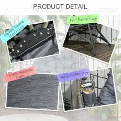 The Outsunny Folding Chair is a modern addition to your outdoor areas. Wrapped in PE rattan for a stylish look with enhanced durability. The large cushion offers plenty of room to sit and relax, with an inner padded seat cushion for extra comfort. The bottle holder bag keeps your favourite drink in place, no need to move once settled in. The steel frame provides a strong core with four legs on the base for support. Easy and safe to store when not in use.