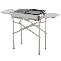 The stunning product has folding leg design, so you can take this BBQ with you wherever you go. The spacious cooking area comes with two BBQ grates and one frying plate capable of cooking up to six burger patties. Great for cooking up 2-4 servings to friends. The non-stick grill pan allows you to cook food struggle-free. Especially suitable for steaks, chicken breasts, fish, shrimp, and more. There is convenient storage with 2 removable side shelves where you can keep condiments, BBQ tools, cutlery, and more.
