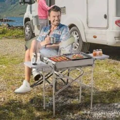 The stunning product has folding leg design, so you can take this BBQ with you wherever you go. The spacious cooking area comes with two BBQ grates and one frying plate capable of cooking up to six burger patties. Great for cooking up 2-4 servings to friends. The non-stick grill pan allows you to cook food struggle-free. Especially suitable for steaks, chicken breasts, fish, shrimp, and more. There is convenient storage with 2 removable side shelves where you can keep condiments, BBQ tools, cutlery, and more.