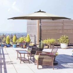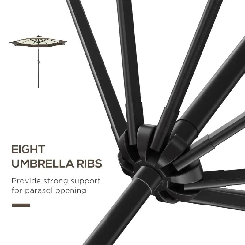 Outsunny 2.7m Parasol with 8 Metal Ribs and Crank – Coffee – 84D-240V00CF