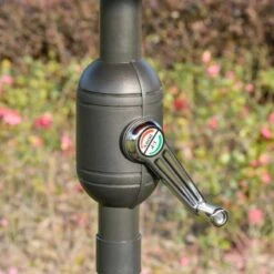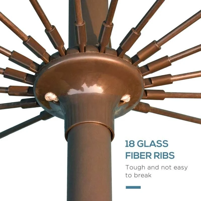 Shield yourself from the sun with the Outsunny Large Garden Umbrella. This sun umbrella features a generous polyester canopy that provides ample shade for your outdoor space. The sturdy metal frame, connected to the umbrella with 18 fiberglass ribs, ensures durability and stability. It is equipped with a convenient crank handle and tilt mechanism for easy opening and adjustment. The vent on the canopy promotes airflow and helps prevent the parasol umbrella from being lifted by strong winds. With its attractive design, this garden parasol seamlessly blends with your existing outdoor furniture. Please note that the umbrella base is not included.
