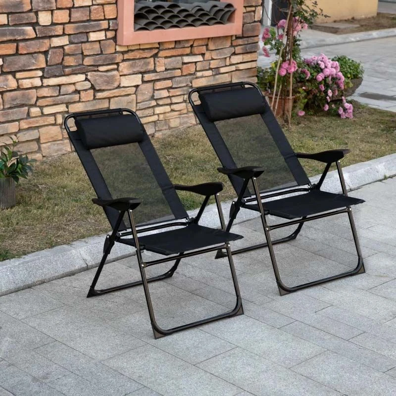 Outsunny Garden Reclining Chair Set With Pillow – Black – 84B-902V70BK