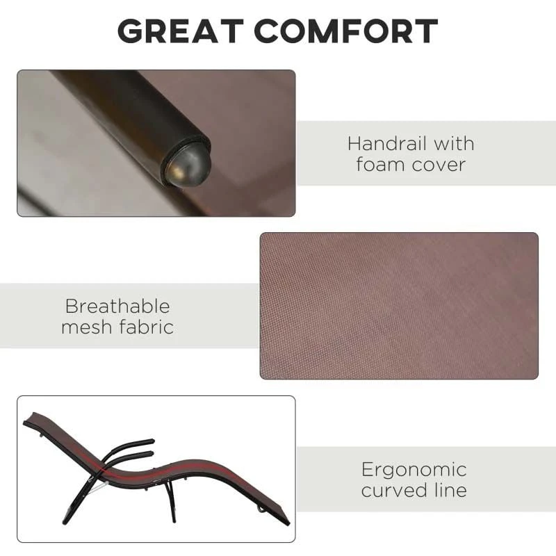 Check out this stunning Outsunny garden sun lounger that we can be sure will compliment your outdoor living space perfectly. Constructed from a powder coated metal frame the set is strong, durable and will last for years to come. Covered in a mesh sling fabric that circulates air keeping you cool on warm summer days and is easily cleaned with a damp cloth. The curved seat contours your body perfectly and will make you feel fully supported and comfortable for hours on end. The folding function allows you to easily manoeuvre the sun lounger around your garden and stored away neatly when not in use. If you are looking for a beautifully designed sun lounger, this is the one for you.