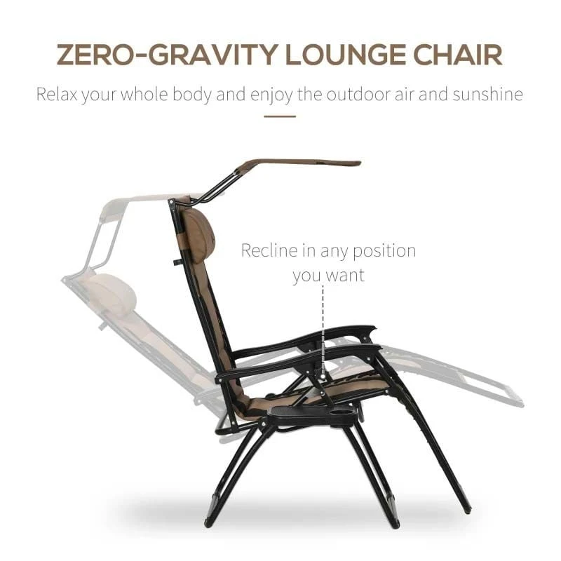 Outsunny Garden Sun Lounger Chair With Sun Shade – Brown – 84B-781V70CF