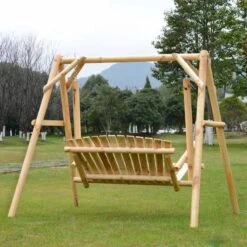 Outsunny Garden Wooden Swing Chair – Natural Wood – 84A-086