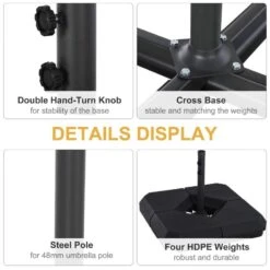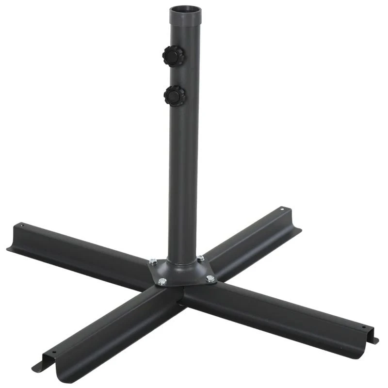 Outsunny’s high-quality four-piece weighted base will increase the stability of your parasol. Each portion of the base is made of tough HDPE plastic and can carry up to 15 litres of water or 18 kilograms of sand. The convenient side sprout makes filling simple, and when empty, it is lightweight and portable. This foundation is easy to clean and store because it was designed for ease. Its sturdy structure keeps your parasol secure in all weather conditions. The steel cross base connects all four components, providing a secure and stable basis. It is appropriate for both residential and commercial settings and is suitable for parasols with a 48-mm diameter pole.