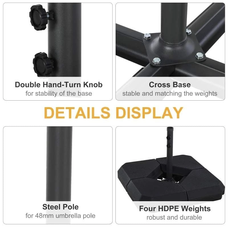 Outsunny HDPE 4-Part Fillable Parasol Base – Black – 84D-089