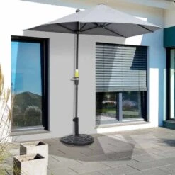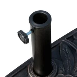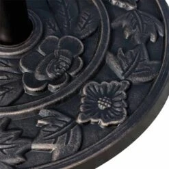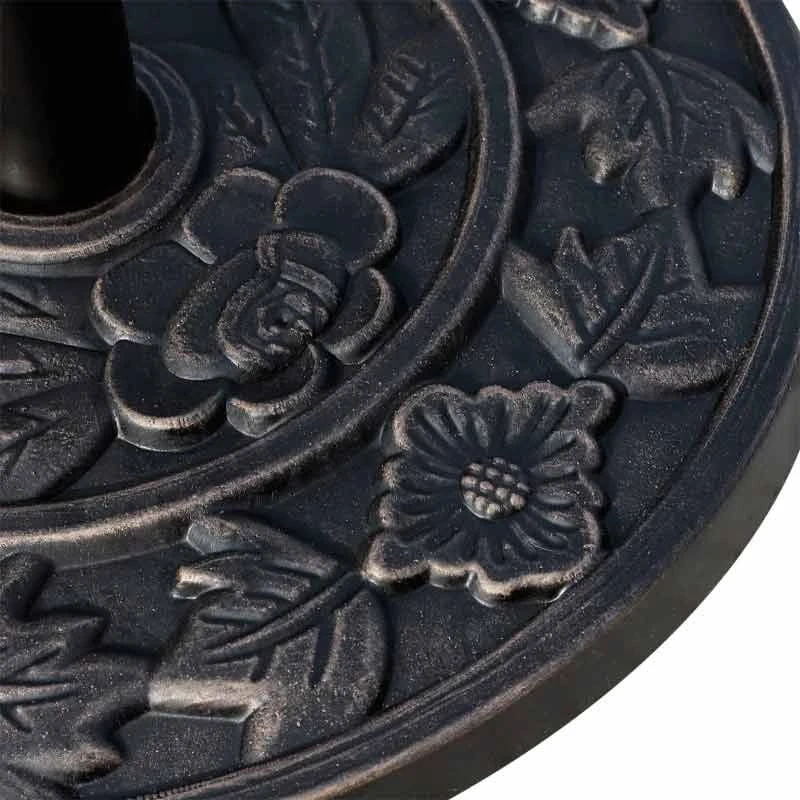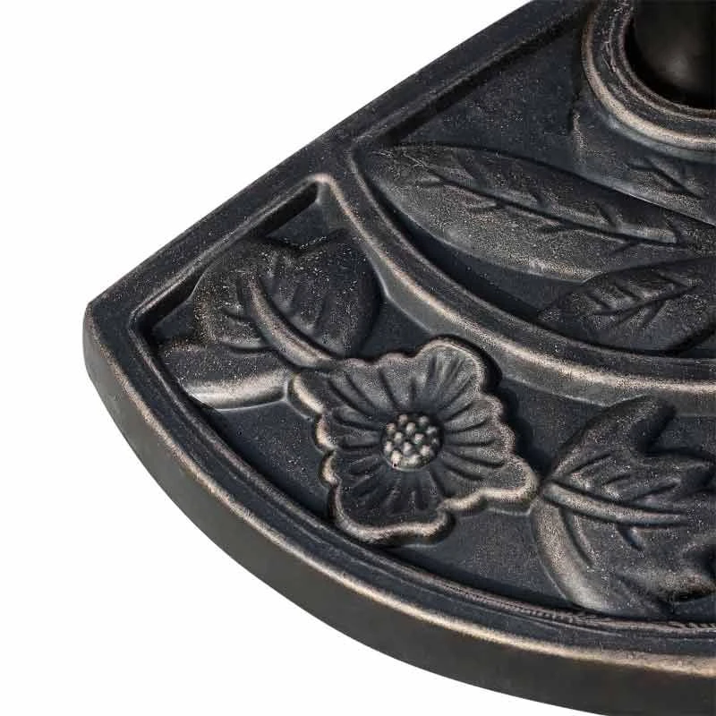 Outsunny Half-Round Parasol Base will complement your outside space and is meant to take up less space while yet providing stability and support. Its rust-resistant resin construction provides reliability and endurance. The appealing floral design in antique bronze gives a touch of sophistication to any outdoor area. It secures your patio umbrella upright with an opening and a tightening knob. It is simple to assemble, making it an ideal choice for your garden, patio, or other outside space.