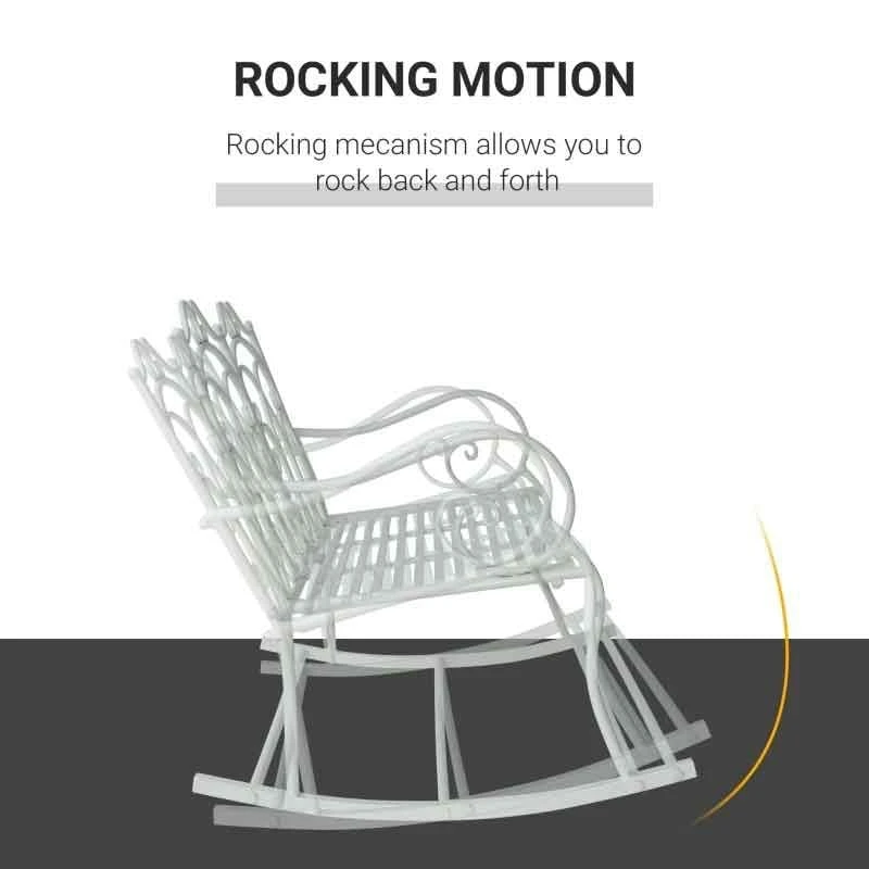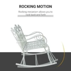 Outsunny Iron Rocking Bench – White – 84B-078