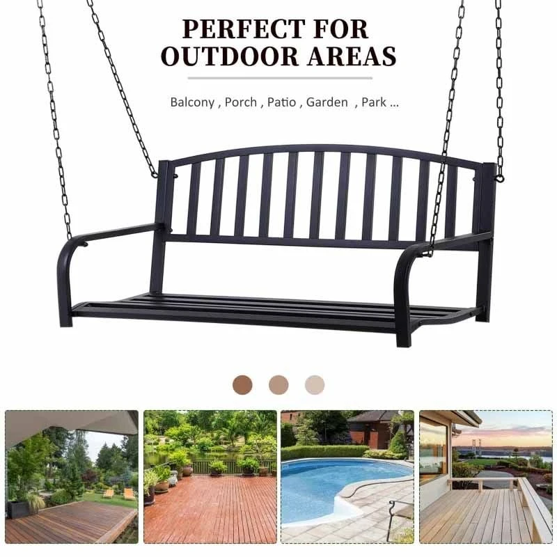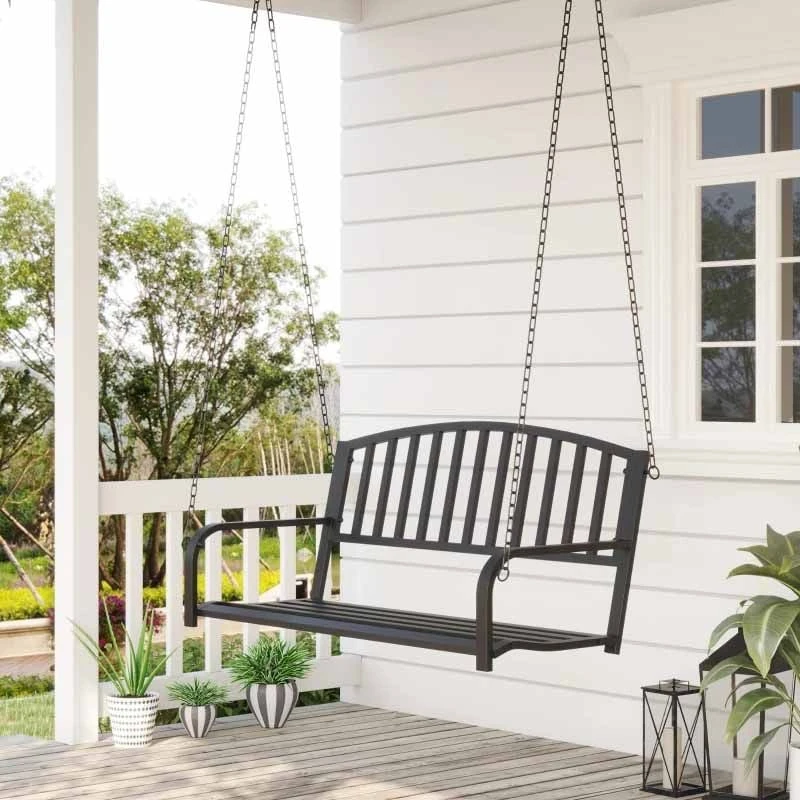 Simple yet elegant, this Outsunny Metal Swing Chair will add a stylish update to your outdoor area. Slatted on the seat to prevent water build-up and on the back to circulate air around when hot. Two long chains on both sides allow you to swing this seat securely and safely from a higher platform. The weather-resistant topcoat help protect it from the elements and prolong its lifespan for years of use.