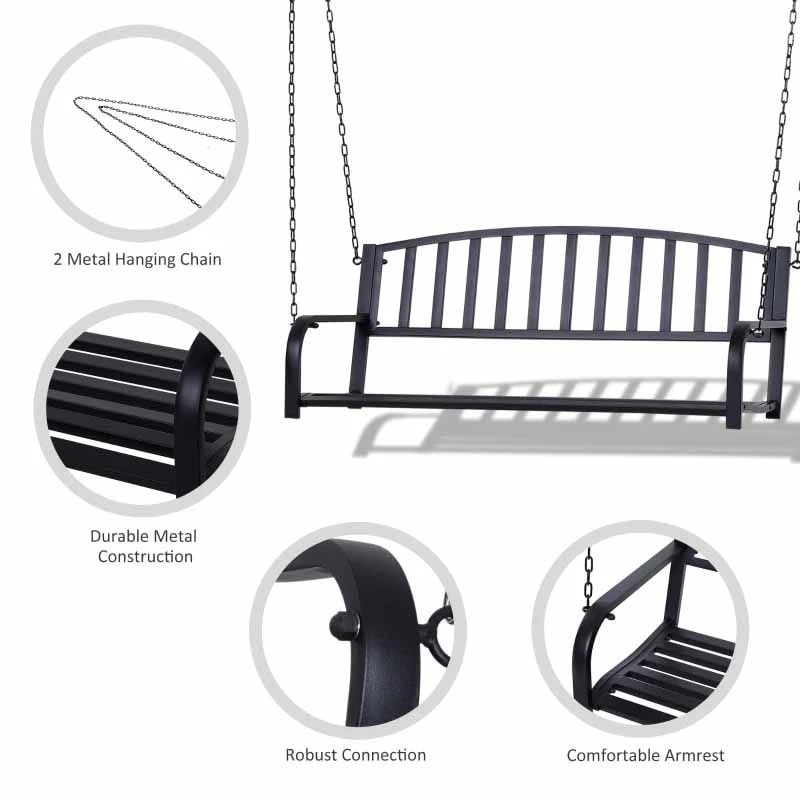 Outsunny Metal 2-Seater Outdoor Swing Chair – Black – 84A-035