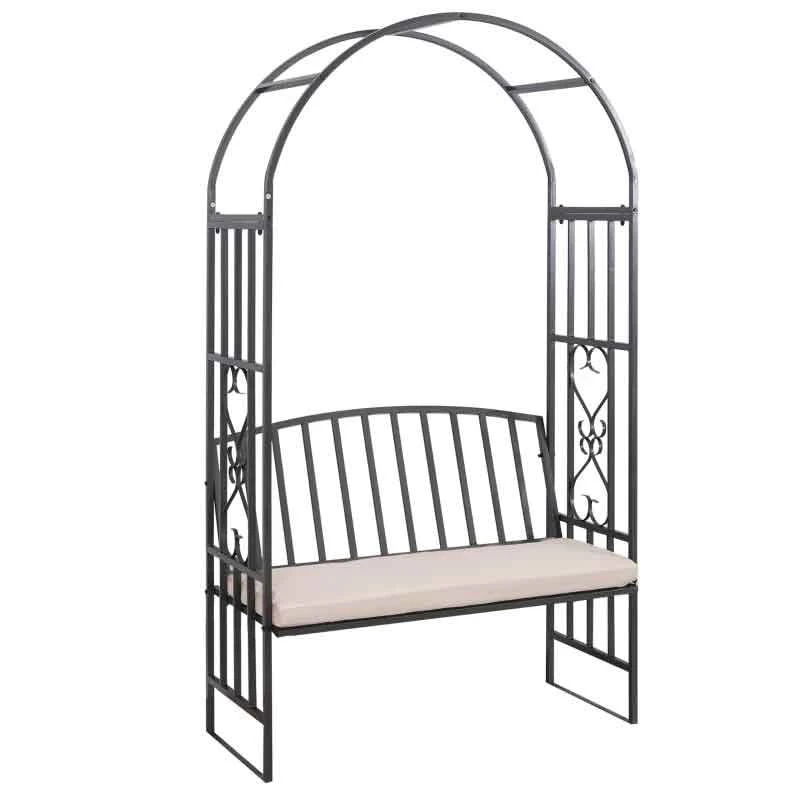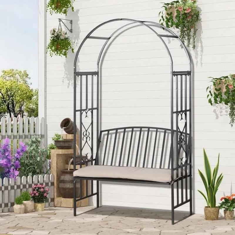Check out this elegantly designed Outsunny garden bench with arch that surrounds you and is perfect for growing climbing flowers and vines. With added seat cushion, this garden bench is the ideal piece of furniture to add to your outdoor living space.