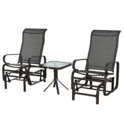 Outsunny Metal Garden Rocking Chair W/Table-Brown-84A-134