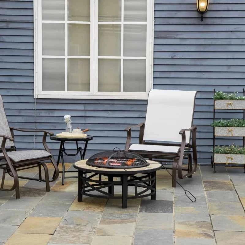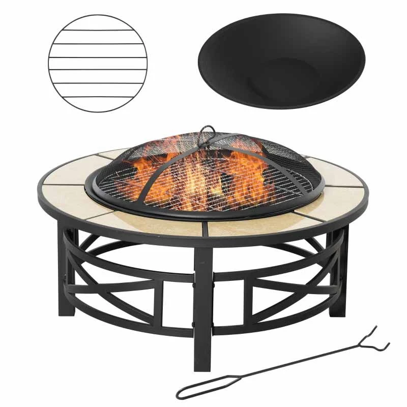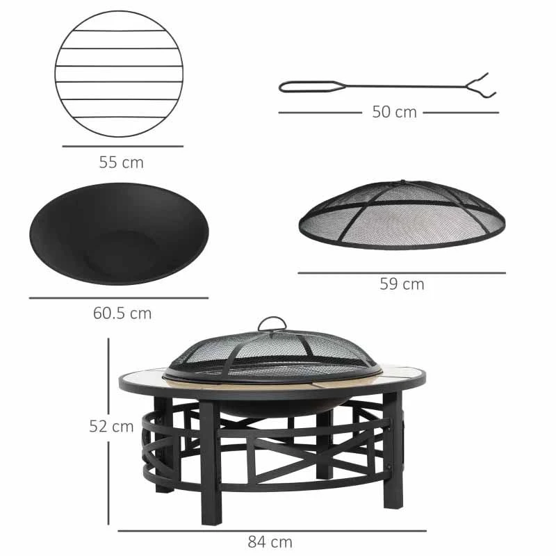 This multifunctional Outsunny fire pit is a stylish addition to your outdoor living. Features a bottom pit for holding fire with a cooking grate to hold food. The food-grade cooking grate is easy to remove to change into a fire pit table, easy to add charcoal in, and place back on for barbecuing food. The frame is made from metal providing a strong structure with four legs for balance and stability. A great compliment to your outdoor living and a perfect piece to have during the cool evenings.