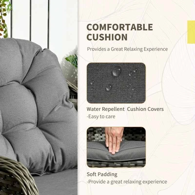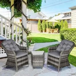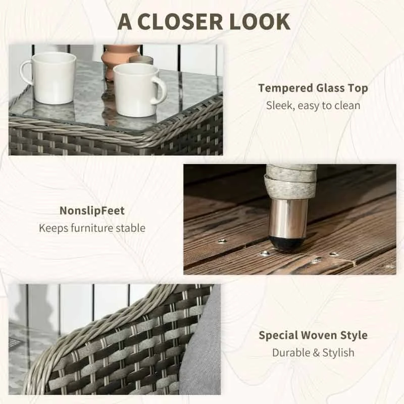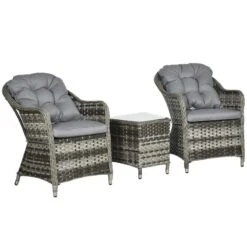 Outsunny Modern 3 PCS Rattan Bistro Set with Soft Cushions – Grey – 863-112V70GG