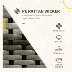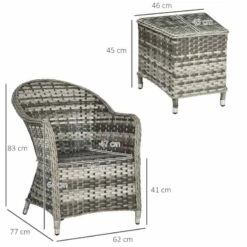 The two large armchairs from the Outsunny outdoor seating set, along with a matching table, are ideal for lounging in your garden, poolside, deck, or backyard. This bistro garden furniture construction is made of lightweight aluminium, and each component is covered in PE rattan to ensure strength and durability against weather conditions while also making it simple to clean. Four suckers are used to secure the glass. It is strong, long-lasting, fashionable, simple to clean, and resistant to UV and water damage due to the use of high-quality PE wicker.