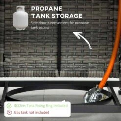 - Rain cover included. Propane tank is required – not included