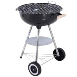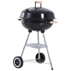 The Outsunny Portable Charcoal BBQ Grill is made from steel with a porcelain enamel coated lid for strength and superb durability. There is also three stainless steel legs for stability. The air vents allow you to control the temperature easily with the lid down and there is a wooden handle situated on lid for safety when opening and closing. The ‘One touch’ system’ empties ash and debris into the ask catcher for quick removal of waste, making it very easy to clean. The two wheels means it can be easily moved with no hassle.