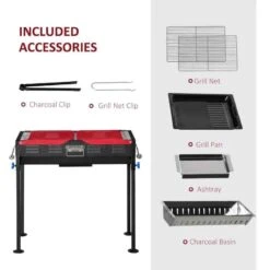 Outsunny Portable Charcoal Grill BBQ With Shelves – Red/Black – 846-076