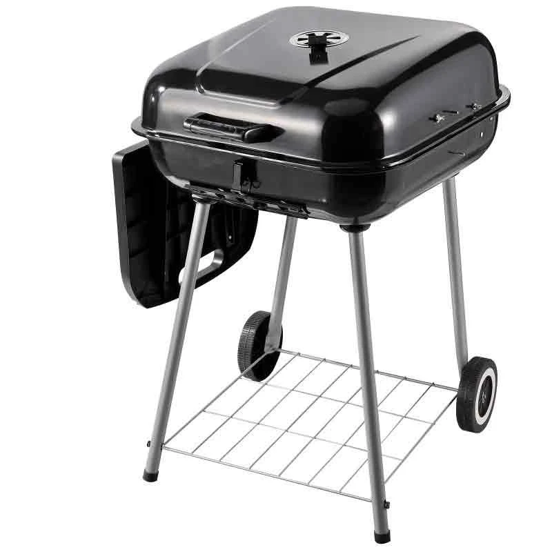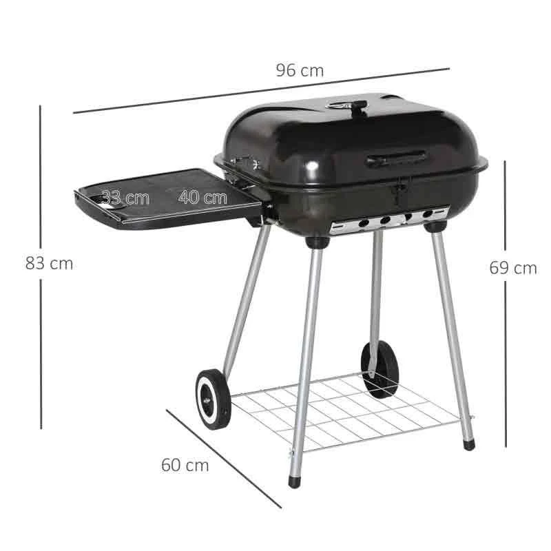 The Outsunny Portable Charcoal Grill is built with a lid which can save heat, and the adjustable vents on the lid help control the inside temperature. The large BBQ grill area comes with a wide grilling rack and a warming rack for keeping food warm temporarily. The coal bbq with lid has a black enamel finish that can resist 600℃ for safe and convenient cooking and the anti-scalding handle is safe for you to open the lid. The foldable side table is convenient to keep seasonings and BBQ tools at hand. The bottom storage rack of the freestanding barbecue helps with spare charcoal, plates, or anything else you might need. The BBQ trolley is equipped with two wheels which enable you to move your barbecue with ease to where you need it.