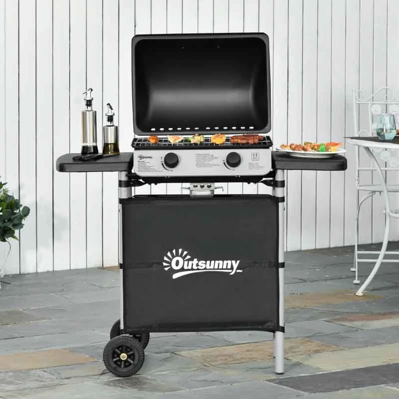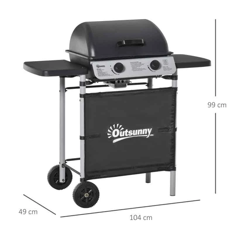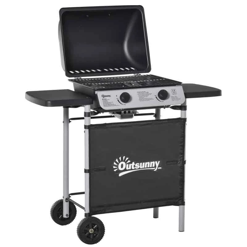 Outsunny Propane Gas BBQ Grill With Two Burners & Side Shelves – Black – 846-063