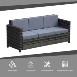 Outsunny Rattan 3 Seater Sofa – Grey – 860-095