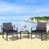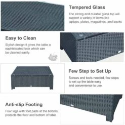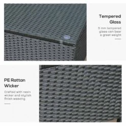 Outsunny Rattan Coffee Table with Glass Table Top – 850mm – Black – 01-0722