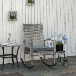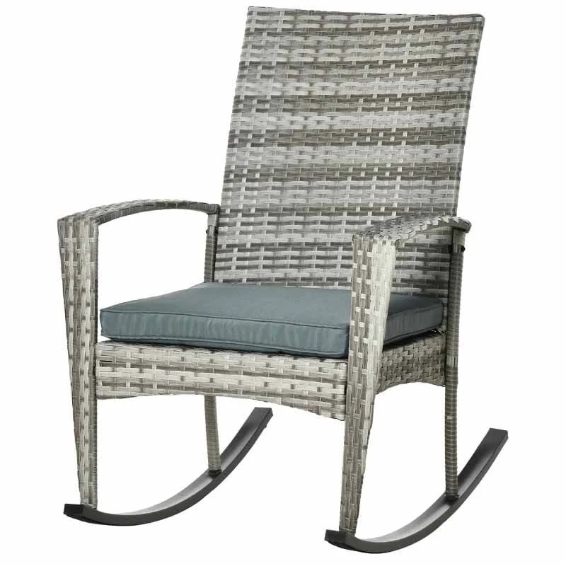 Outsunny Rattan Garden Rocking Chair W/Cushion-Light Grey-841-146LG