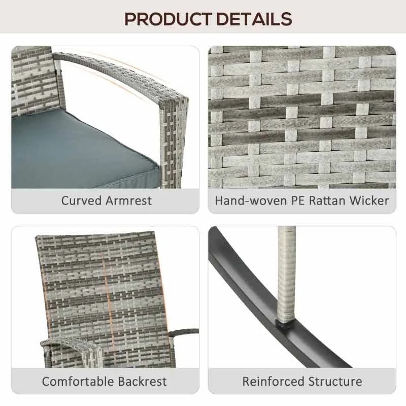 Check out this beautifully designed Outsunny rocker chair. Constructed from a high-quality metal frame wrapped in rattan this garden chair is durable and will withstand the weather elements for years to come. The deep seat, high back and arm rest with a think cushion, we can be sure you will be completely supported and comfortable for hours on end. The curved rocker base will glide you smoothly back and forth for ultimate relaxation This garden chair is also lightweight so you can manoeuvre easily to a desirable spot of your garden. The modern rattan design will fit in perfectly in any outdoor living space, so sit back and relax with a drink in hand in the comfort of your own garden