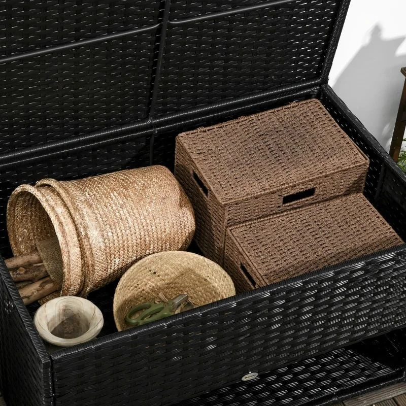 Outsunny Rattan Garden Storage Box – Black – 865-010V00BK – Details