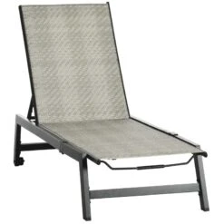 Outsunny Rattan Reclining Sun Lounger – Grey – 862-064V03GG