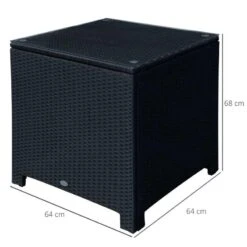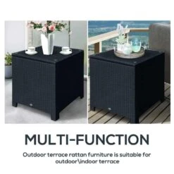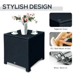 Outsunny Rattan Side Table with Glass Table Top – 640mm – Black – 01-0724