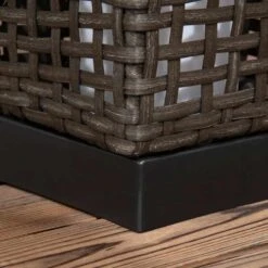 This rattan solar lamp will complement your outdoor furniture on any patio or yard. It incorporates a solar-powered LED light with 15 lumens, when completely charged, emits plenty of light for eight hours. It turns on and off on its own. Its substantial bottom base helps it maintain its equilibrium. Snow, ice, and rain have no effect on the solar lantern.